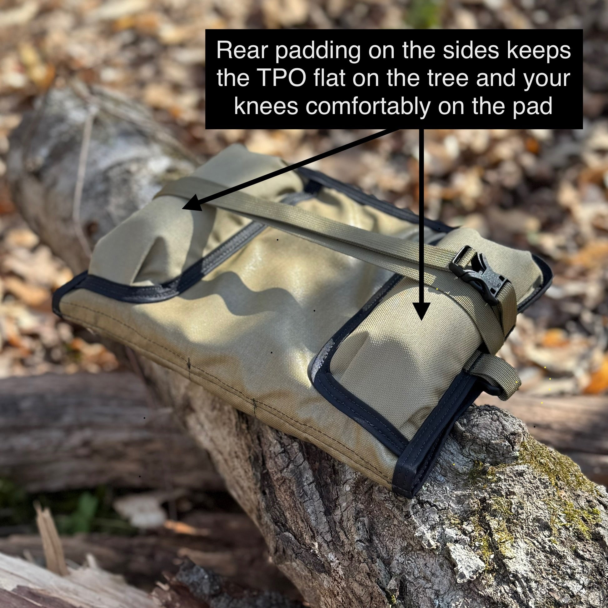 One of its standout features is the rear padding inserts, designed to contour to the shape of the tree, providing superior knee comfort and stability. This design keeps the pad flat and your knees in place, allowing you to relax without constantly adjusting or struggling to keep your knees on the tree. This Gen 2 TPO has nearly doubled the size of those inserts from the original TPO to better accommodate hunters setting up in smaller trees.